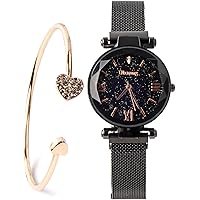 Home »Unlabelled » Luxury Quartz Starry Sky Dial Ladies Wrist Watches,Magnetic Mesh Band Watch and Bracelet Set-Valentine's Day Gifts