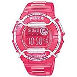Casio's Baby-G casual watches are meant for active young women. Along with the toughness inherited from G-Shock, including both shock and water resistance, the Baby-G brand offers fashion appeal created by individualistic styling and creative color use, as well as a range of functions including World Time. The new BGD-120P watches are water resistant to 200 meters, which makes them perfect for ocean sports. These Baby-G watches boast a fun, pop design suitable for leisure activities. In addition to a wire protector to buffer the watch from shocks, they feature a large button for the often-used EL backlight, with the Baby-G brand logo rendered in raised lettering to enhance finger grip and ensure better operability. Read more